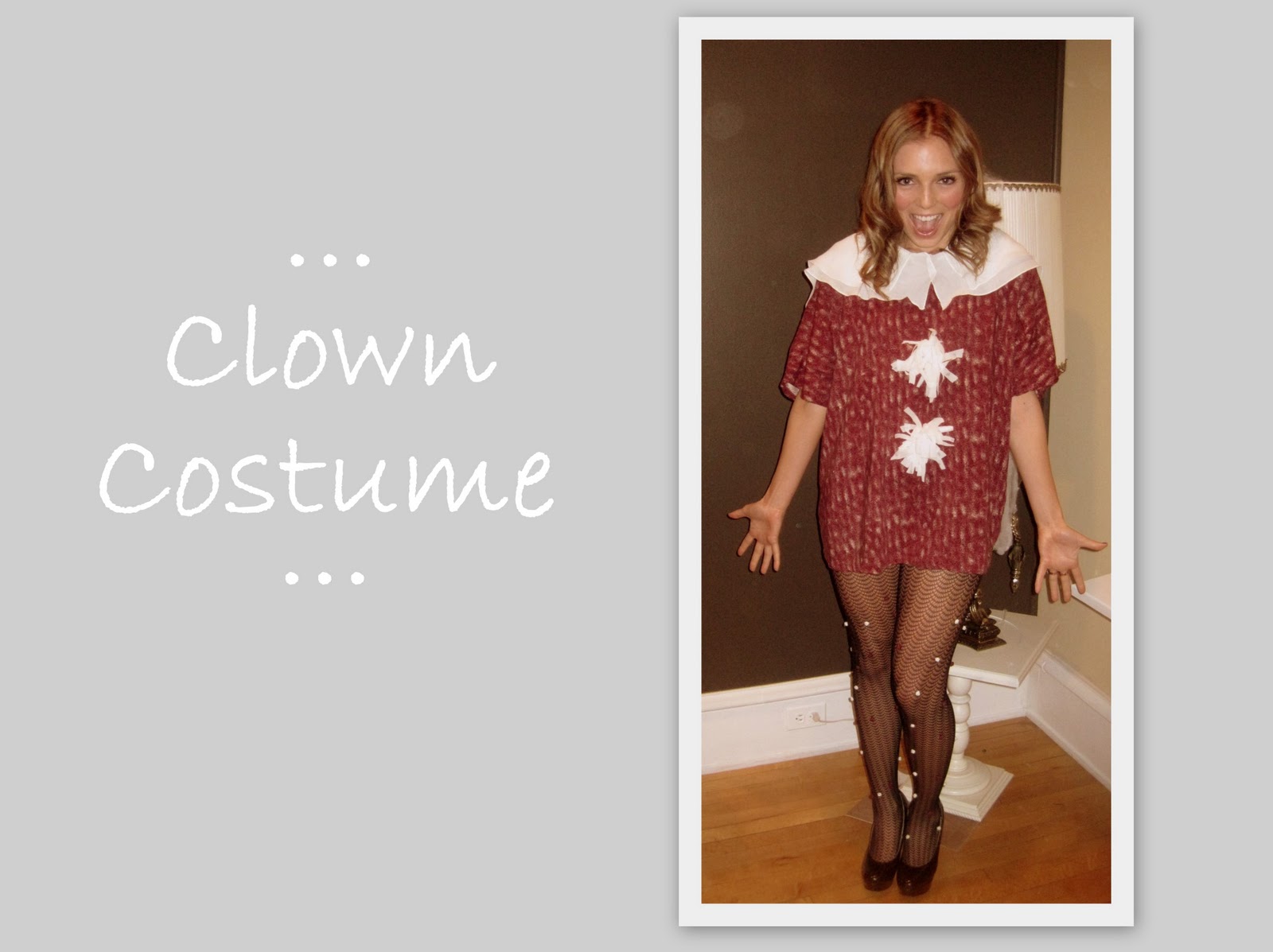 Rather last minute, I decided to whip up a second costume for my Saturday night out. As everything was a bit of a rush, alcohol consumption was included in the creation of this costume, hence the not-so-helpful pictures … but ce la vie! Here’s how to make the clown costume above:
