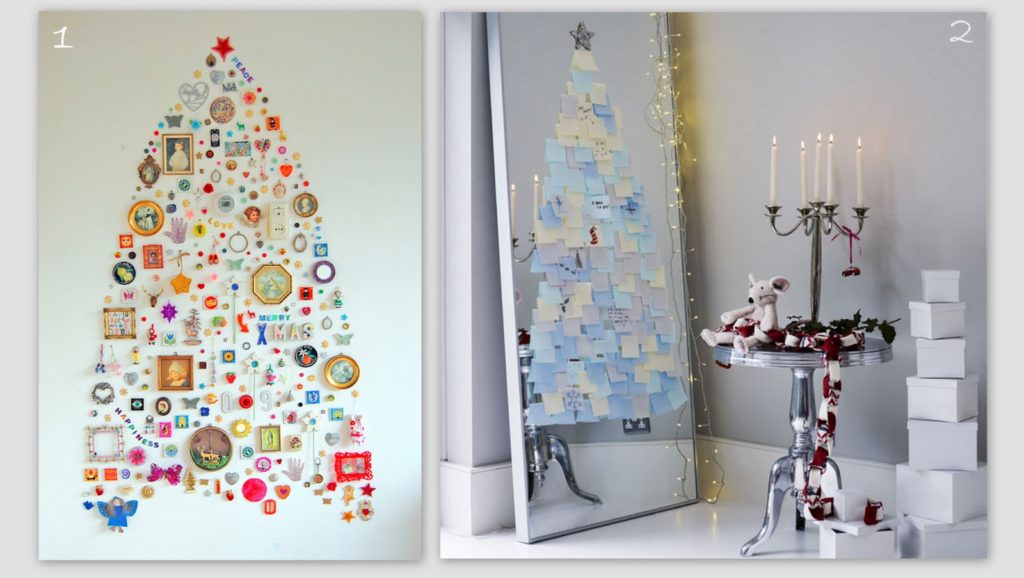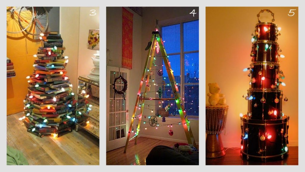 1. Odds n’ Ends Tree 2. Post-it Tree 3. Bookmas Tree 4. Ladder Tree 5. Drum Tree 6. Art Tree 7. Wall Decal Tree