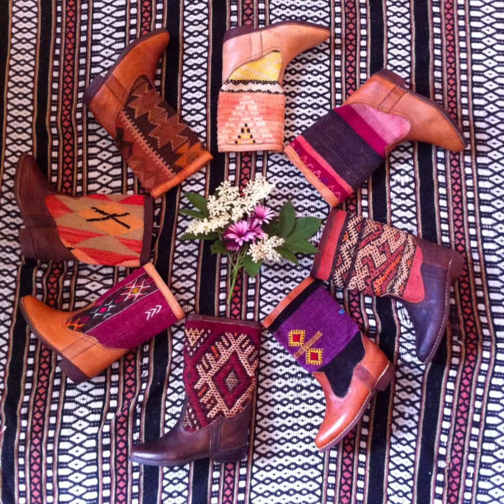 to make bags with (one pictured beneath the boots above, the other seen here) and we exclusively chose boots made from these handmade Kilims.