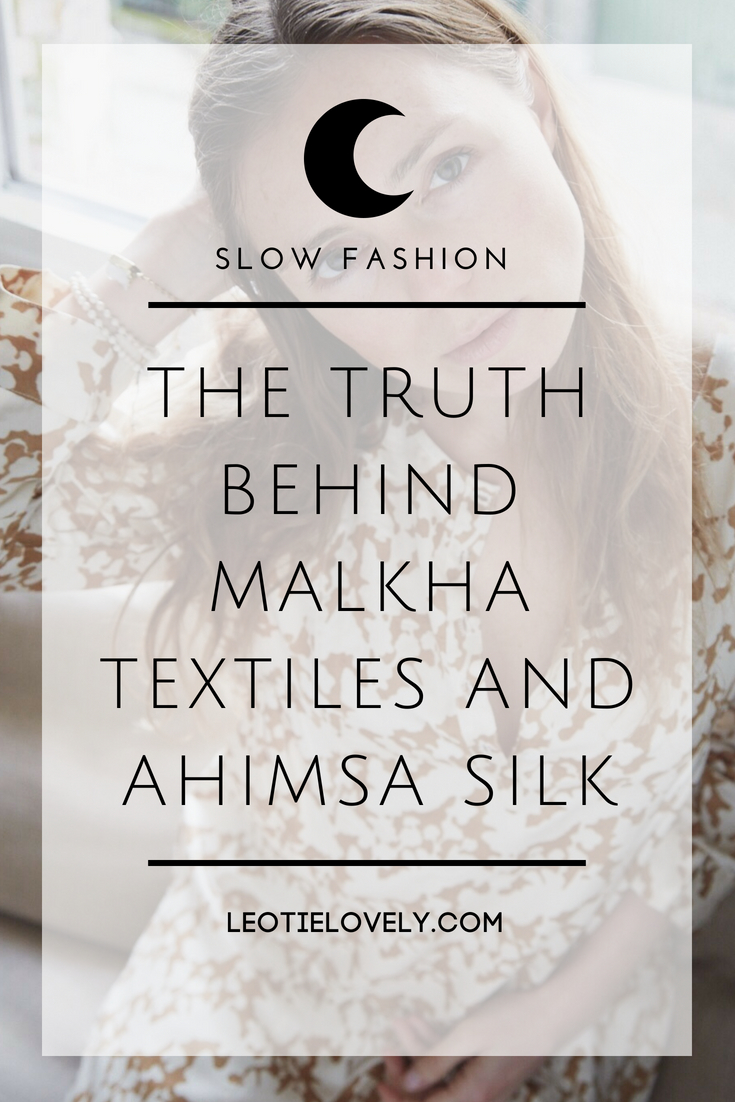 The second fabric is Ahimsa silk, which is what the beautiful EMMA DRESS you see in these photos is made of. It is known as peace silk and is a type of silk that is made in a fashion that is more humane to the creatures creating the silk than many traditional methodologies. Ahimsa comes from the Sanskrit language and translates to non-violence.